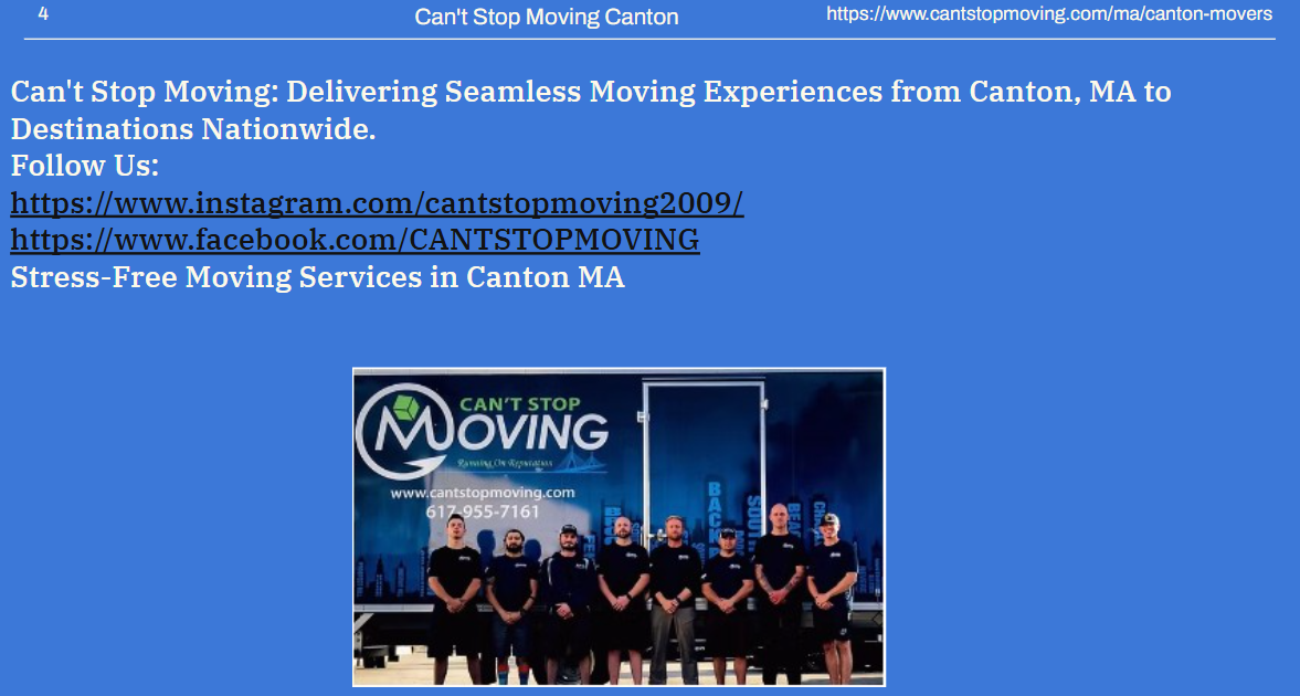 Can't Stop Moving, Your Trusted Partner for Stress-Free Moving in Canton, MA and Nationwide.