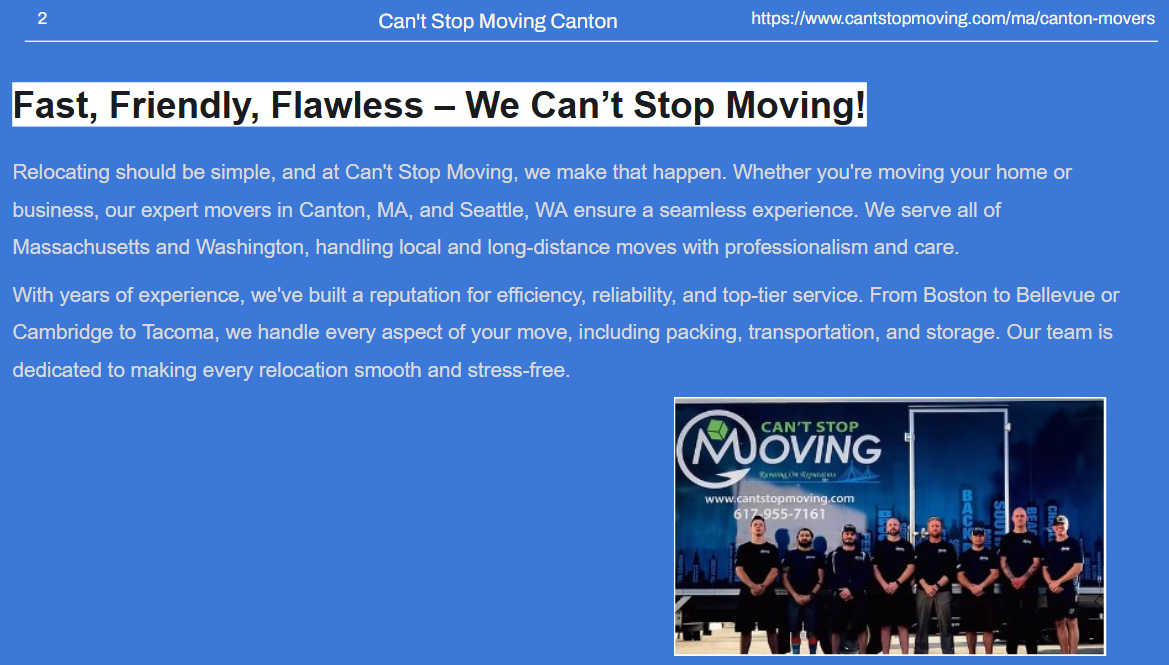 Can't Stop Moving, Your Trusted Partner for Stress-Free Moving in Canton, MA and Nationwide.